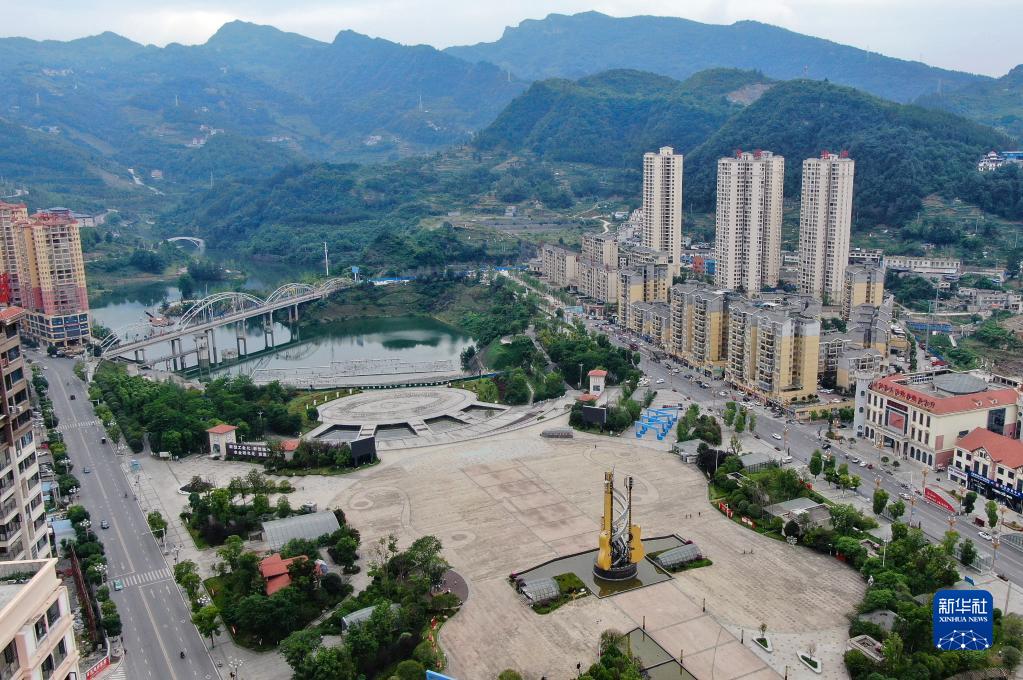 正安吉他廣場(chǎng)上豎立著(zhù)大型的吉他雕塑(6月7日攝)。