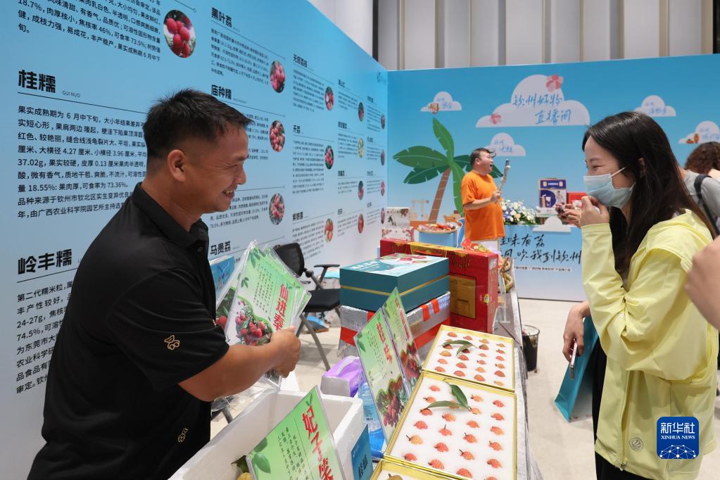 6月10日,展商在推介會(huì )上介紹欽州荔枝。