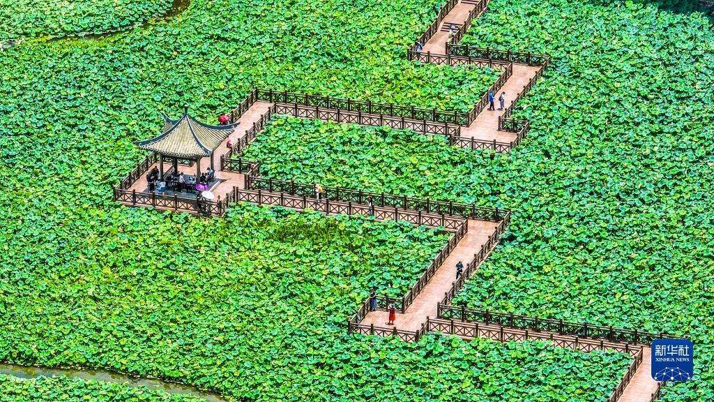 6月10日,游人在南寧市南湖之濱荷花池參觀(guān)游覽(無(wú)人機照片)。