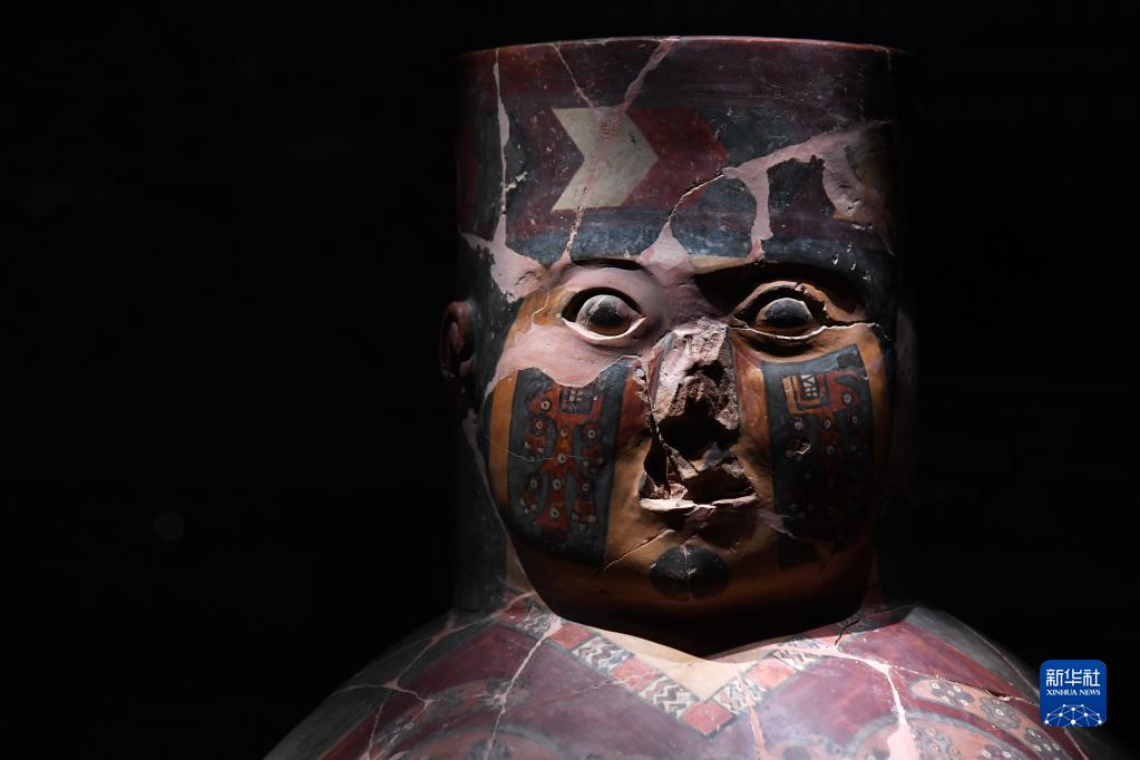 這是在陜西歷史博物館展出的秘魯文物大型人形罐(6月10日攝)。