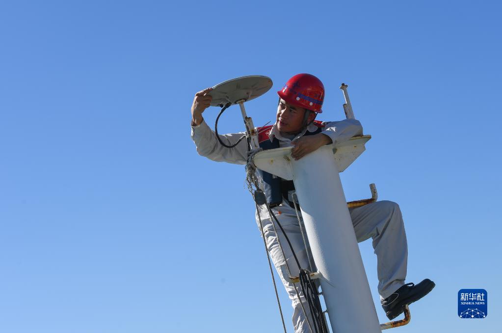 鎖旭宏檢查“一航津安1”號沉管運輸安裝一體船上的北斗衛星數據接收設備(2022年7月22日攝)。