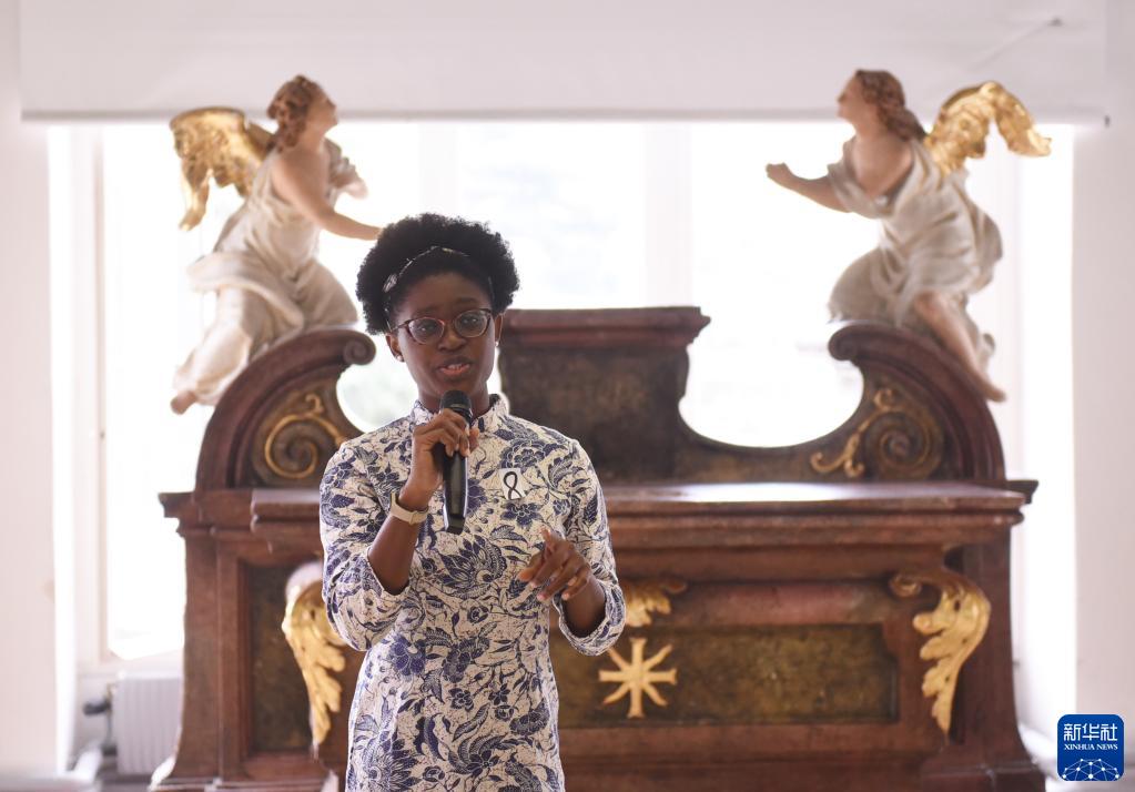 6月10日,在奧地利維也納大學(xué),選手宋娜依在才藝表演環(huán)節演唱歌曲。