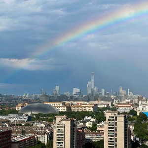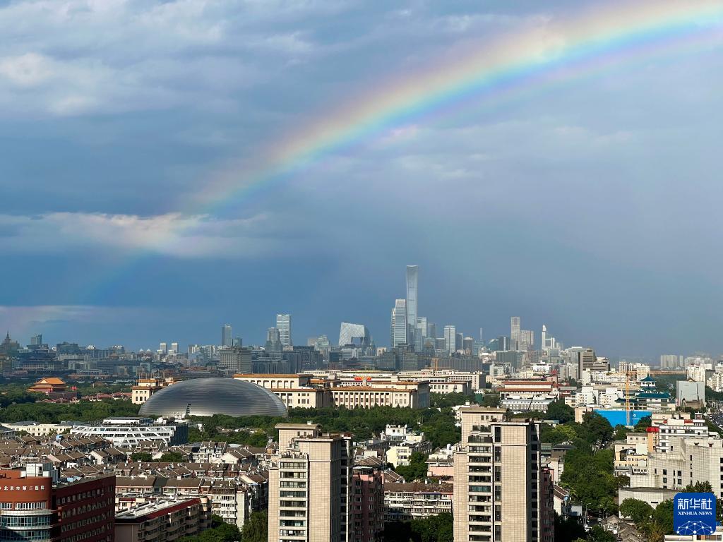 當日,一場(chǎng)降雨過(guò)后,北京上空出現彩虹。