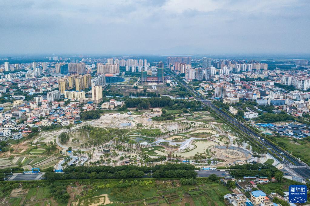 6月10日在海南省東方市拍攝的建設中的福民湖(福民公園)(無(wú)人機照片)。