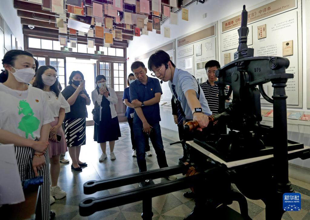6月9日,觀(guān)眾在又新印刷所舊址內,參觀(guān)手扳式印刷機。
