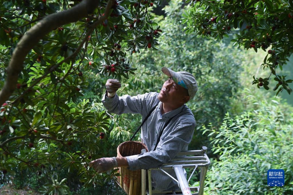 6月12日,在慈溪市橫河鎮梅園村的楊梅園中,種植戶(hù)采摘成熟的楊梅。