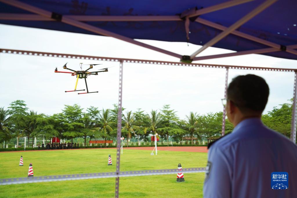 6月12日,民警操控無(wú)人機進(jìn)行精準飛行演練。