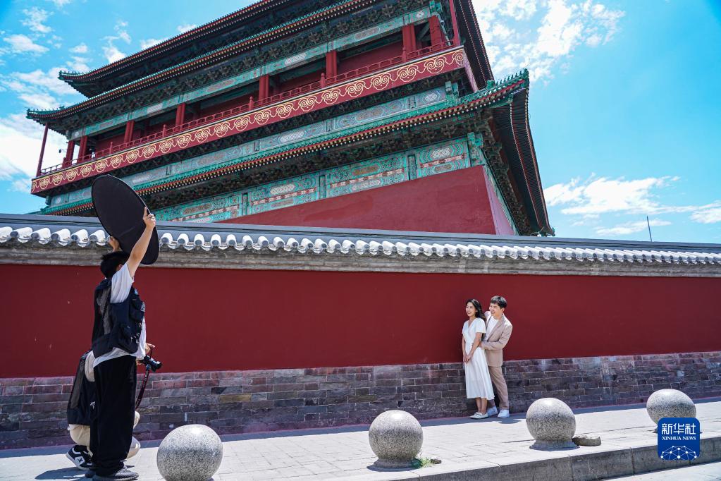 6月11日,人們在北京鼓樓拍照。新華社記者 陳鐘昊 攝