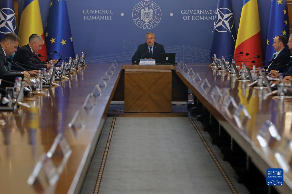 6月11日,羅馬尼亞總理丘克(中)在布加勒斯特出席政府會(huì )議。