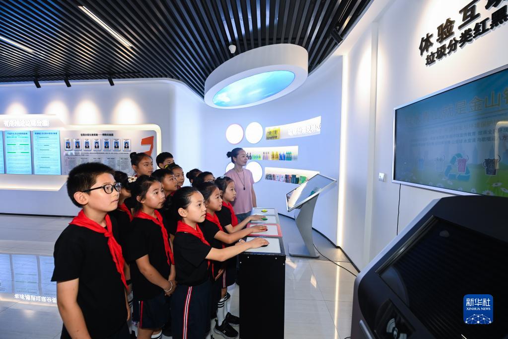 6月13日,周巷鎮精忠小學(xué)的學(xué)生們在老師的帶領(lǐng)下在慈溪市周巷鎮萬(wàn)安莊村的垃圾分類(lèi)科普體驗館里參觀(guān),該村位于浙江省首批小城市培育試點(diǎn)鎮、寧波市衛星城市培育試點(diǎn)鎮——慈溪市周巷鎮,先后獲得全國文明村、國家森林村莊、全國民主法治示范村等榮譽(yù)稱(chēng)號。