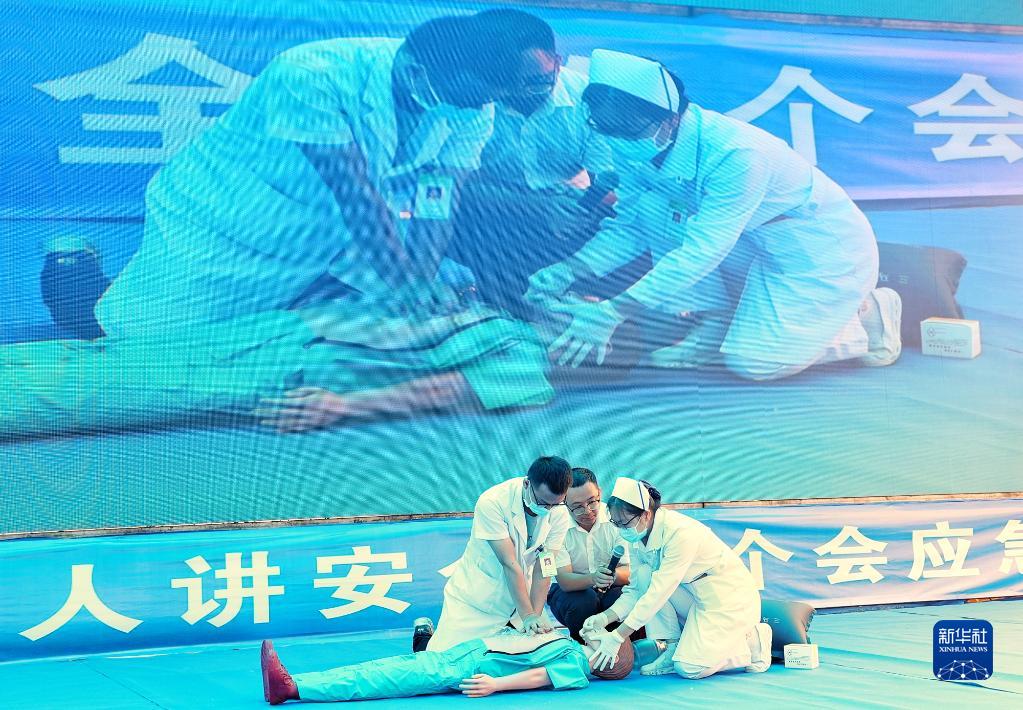 6月13日,醫護人員進(jìn)行急救知識演示講解。