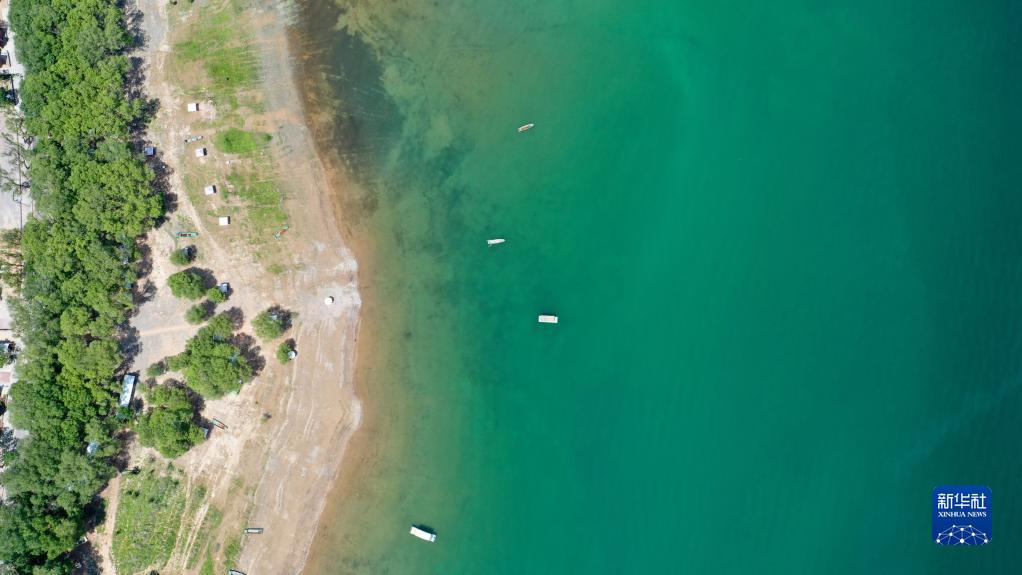 位于甘肅省臨夏回族自治州永靖縣境內劉家峽水庫的黃河三灣碧波蕩漾、岸線(xiàn)蜿蜒,片片小舟在水面搖曳,呈現一幅夏日清新畫(huà)卷。