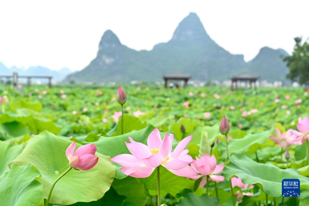6月13日,柳州市柳江區百朋鎮萬(wàn)畝荷塘里荷花盛開(kāi)。