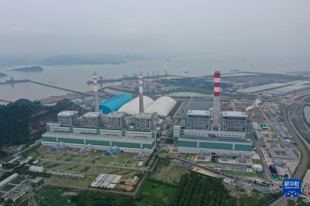 6月13日拍攝的浙能樂(lè )清電廠(chǎng),右側為三期工程(無(wú)人機照片)。