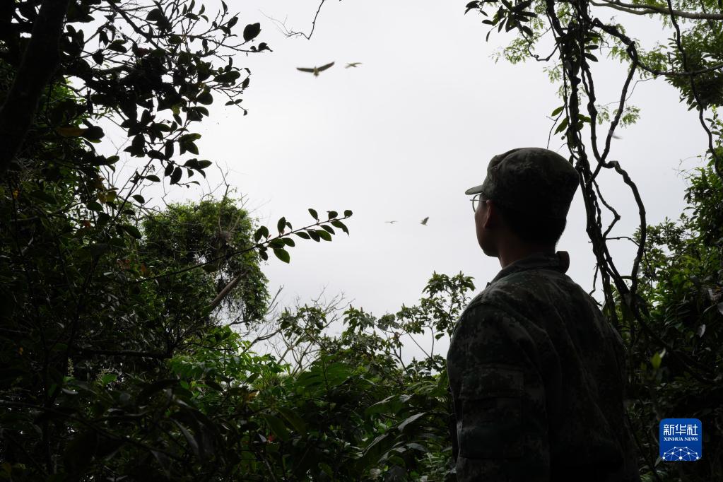 6月13日,海島護鳥(niǎo)隊的成員在一座島上查看鳥(niǎo)類(lèi)棲息繁育情況。