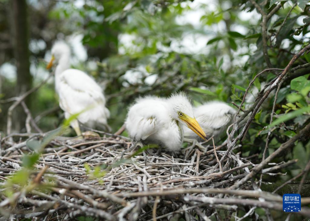 在寧海灣一座島上拍攝的白鷺幼鳥(niǎo)(6月13日攝)。