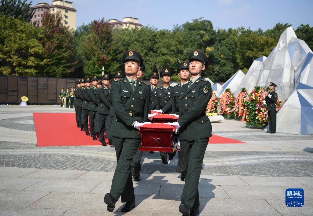 2020年9月28日,禮兵護送第七批在韓中國人民志愿軍烈士遺骸棺槨進(jìn)入沈陽(yáng)抗美援朝烈士陵園安葬地宮。