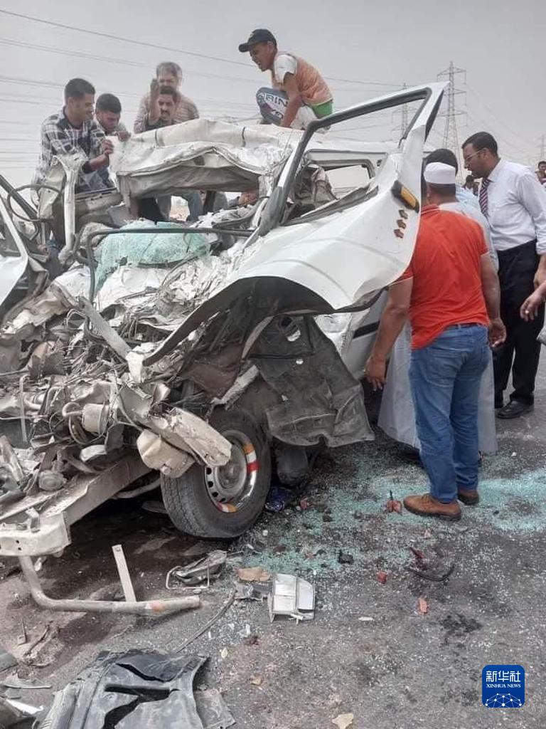這是6月13日在埃及首都開(kāi)羅附近拍攝的交通事故現場(chǎng)。