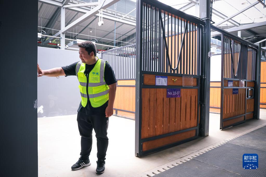 6月9日,汪祥在桐廬馬術(shù)中心巡查高標準馬廄。