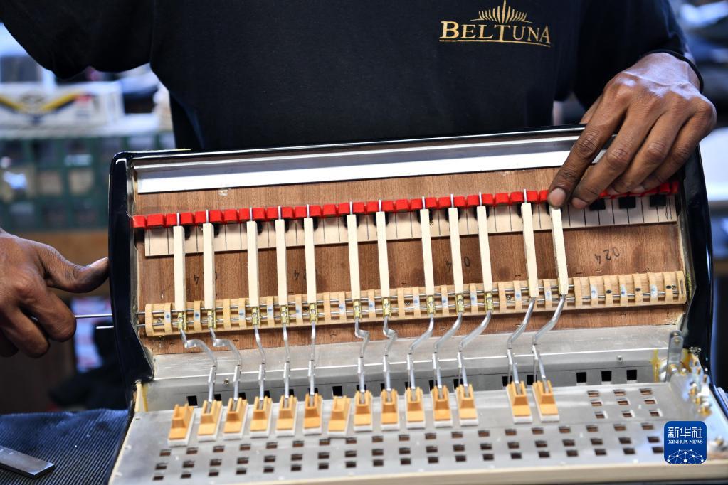 5月29日,在意大利卡斯特爾菲達多,貝爾杜納品牌手風(fēng)琴工匠組裝手風(fēng)琴。