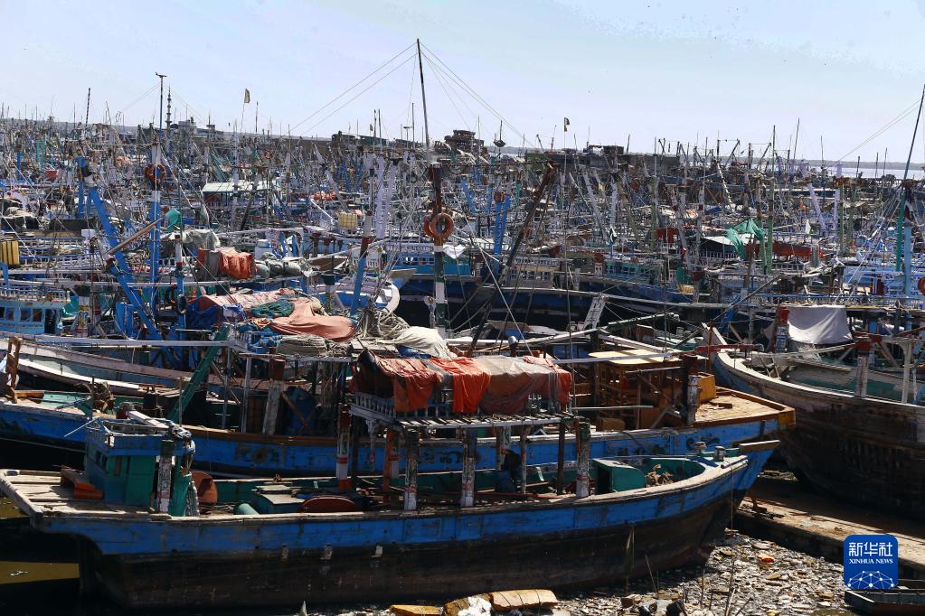 6月13日,在巴基斯坦信德省特達地區,漁船停泊在漁港內。