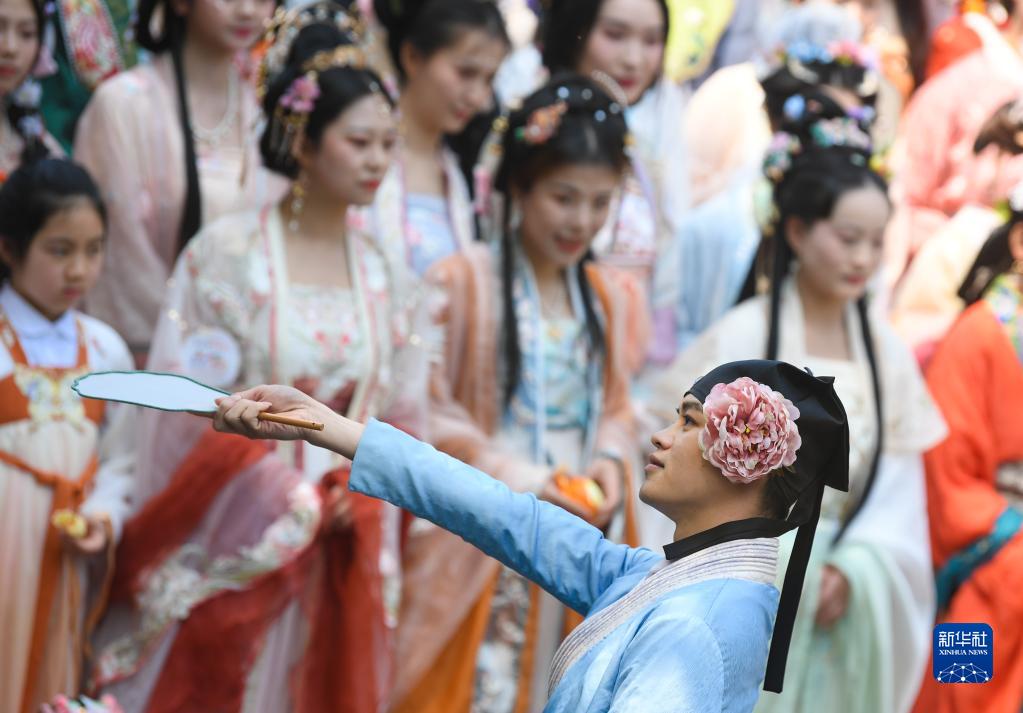 古裝演員在西溪濕地宋韻花朝節上表演舞蹈(4月2日攝)。