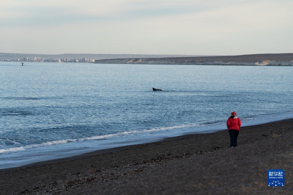 6月13日,在阿根廷馬德林港,游客在海灘上觀(guān)賞南露脊鯨。