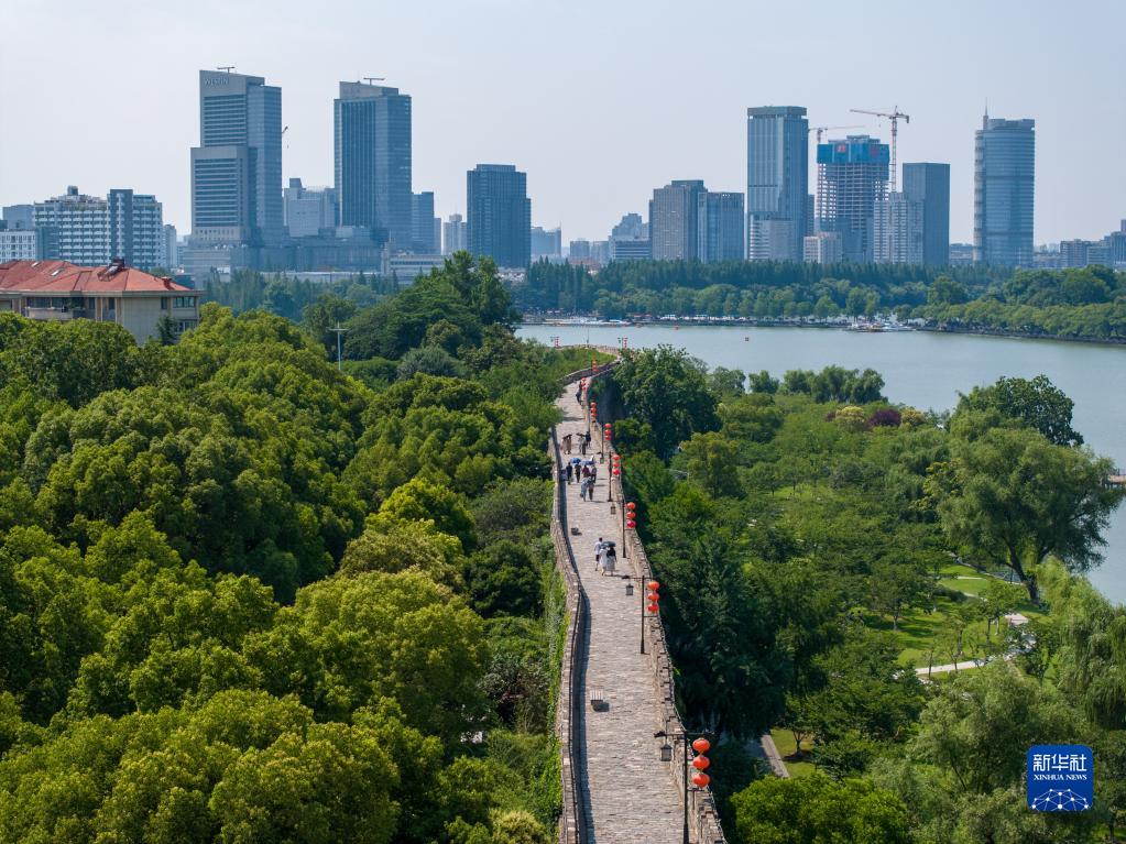 游客在南京城墻北線(xiàn)景區參觀(guān)游玩(6月12日攝,無(wú)人機照片)。