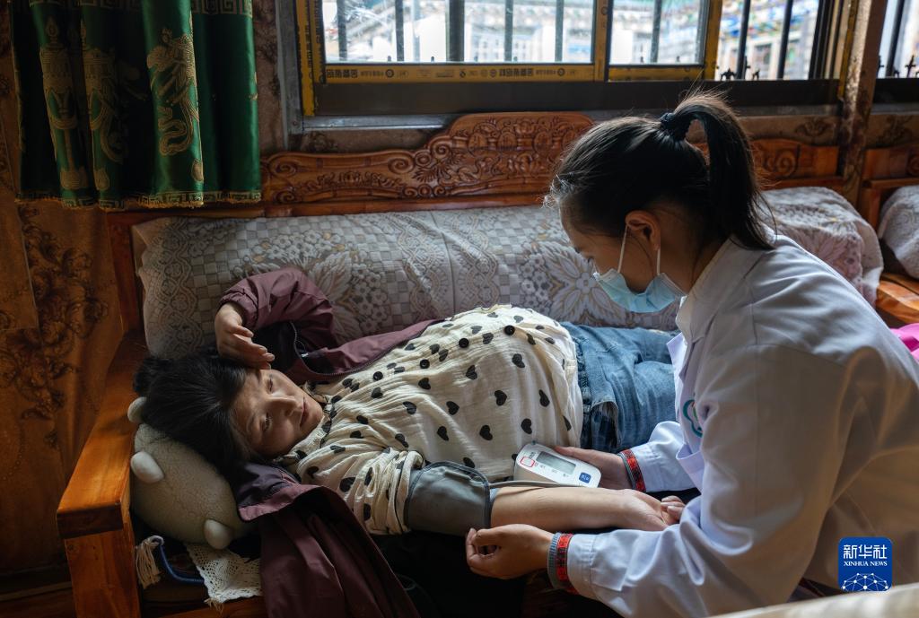 6月12日,陳冰(右)在為扎西央宗進(jìn)行產(chǎn)檢。