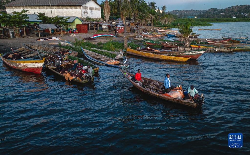 這是6月11日拍攝的坦桑尼亞姆萬(wàn)扎省維多利亞湖畔的漁船(無(wú)人機照片)。