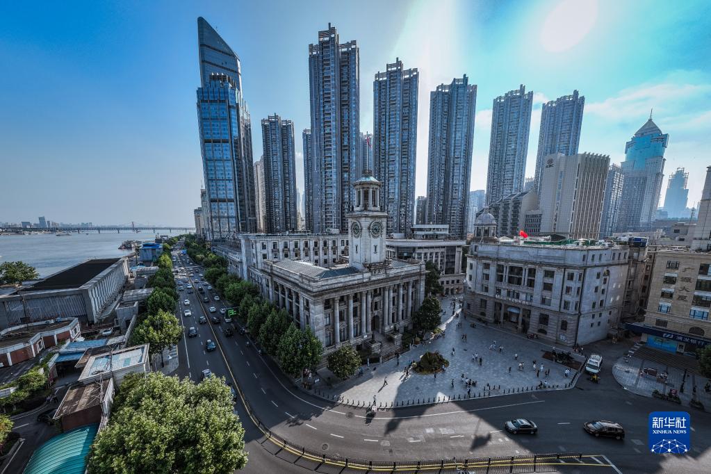 6月6日拍攝的江漢關(guān)(無(wú)人機拼接照片)。