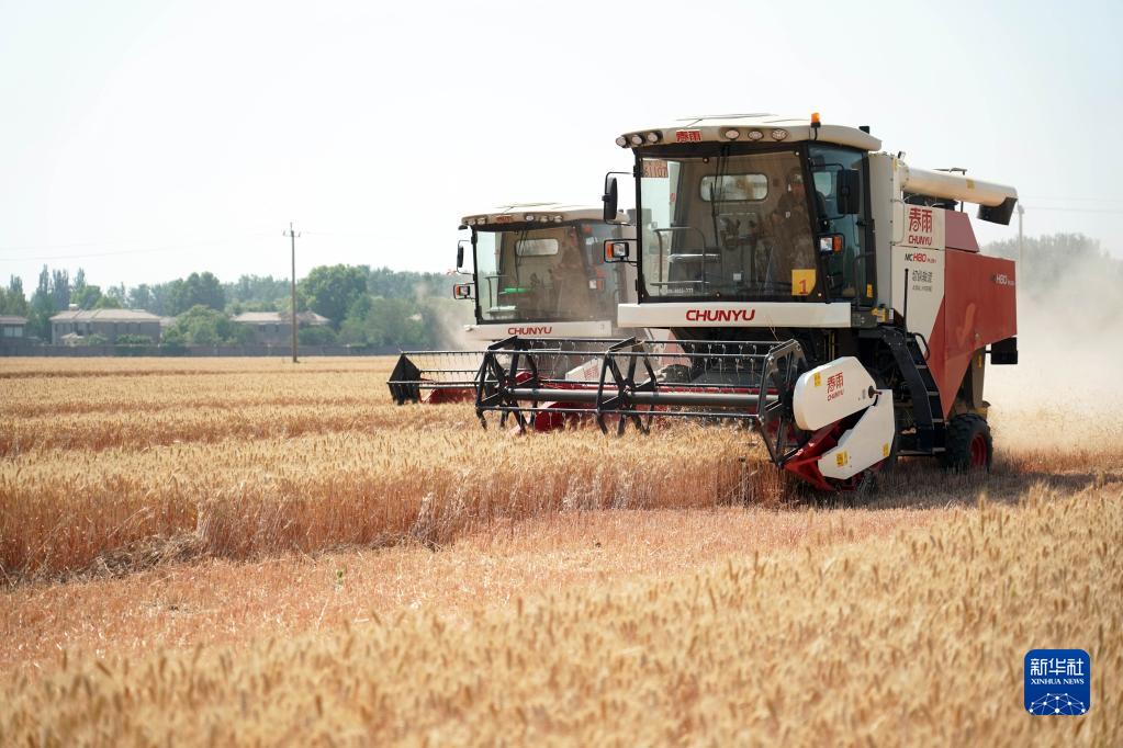 6月15日拍攝的2023年北京市小麥機收減損技能大比武現場(chǎng)。