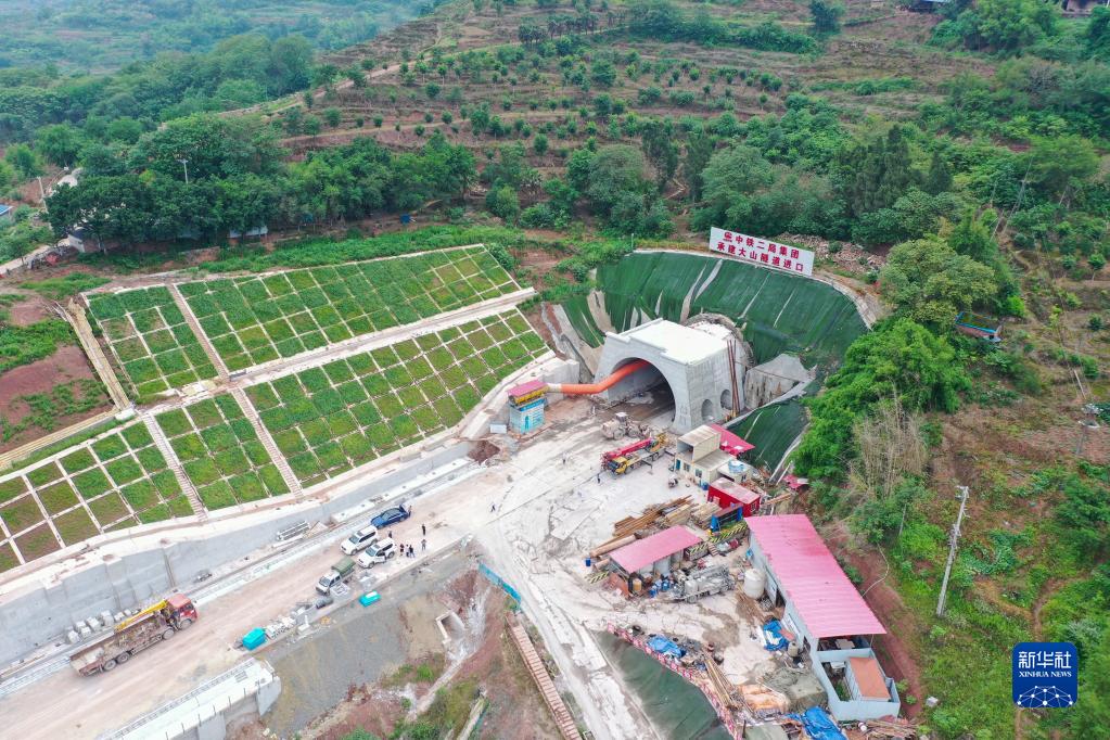 這是6月15日拍攝的渝昆高鐵川渝段大山隧道施工現場(chǎng)(無(wú)人機照片)。