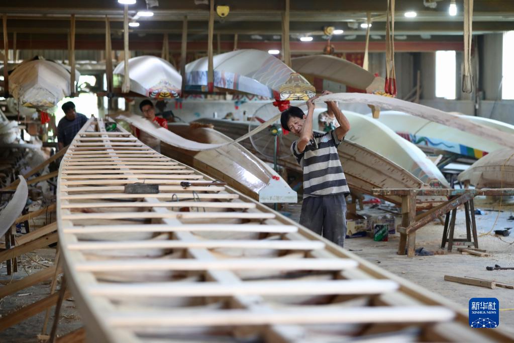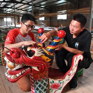 端午節臨近,走進(jìn)位于福建省福州市閩侯縣大樟溪畔的傳統龍舟制作村方莊村,木材加工時(shí)的推刨聲、切割聲、敲擊聲此起彼伏,村里的四家大型龍舟加工廠(chǎng)正加緊趕制端午節龍舟訂單。每年有200多艘龍舟從這里銷(xiāo)往全國,以及美國、日本、新加坡等地。