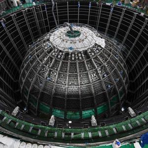 位于地下700米的江門(mén)中微子實(shí)驗探測器呈現巨大的球形結構(6月15日攝)。