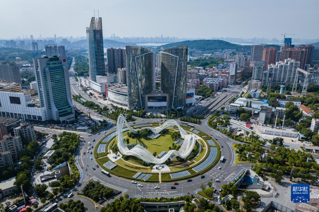 6月14日拍攝的武漢光谷廣場(chǎng)綜合體(無(wú)人機照片)。