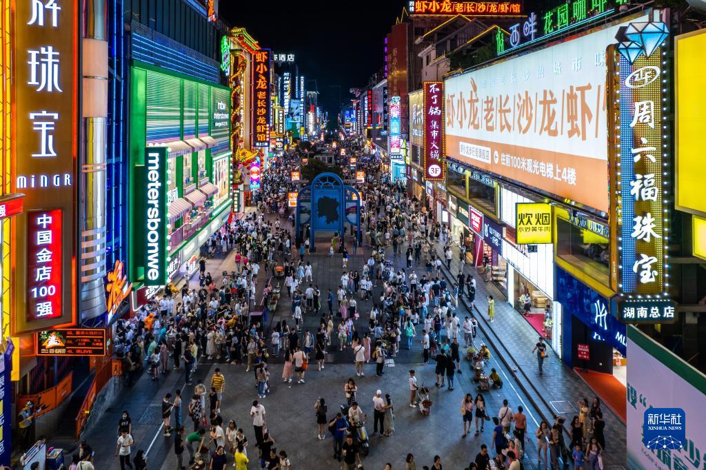 6月7日,游客在長(cháng)沙市天心區黃興路步行街游玩(無(wú)人機照片)。