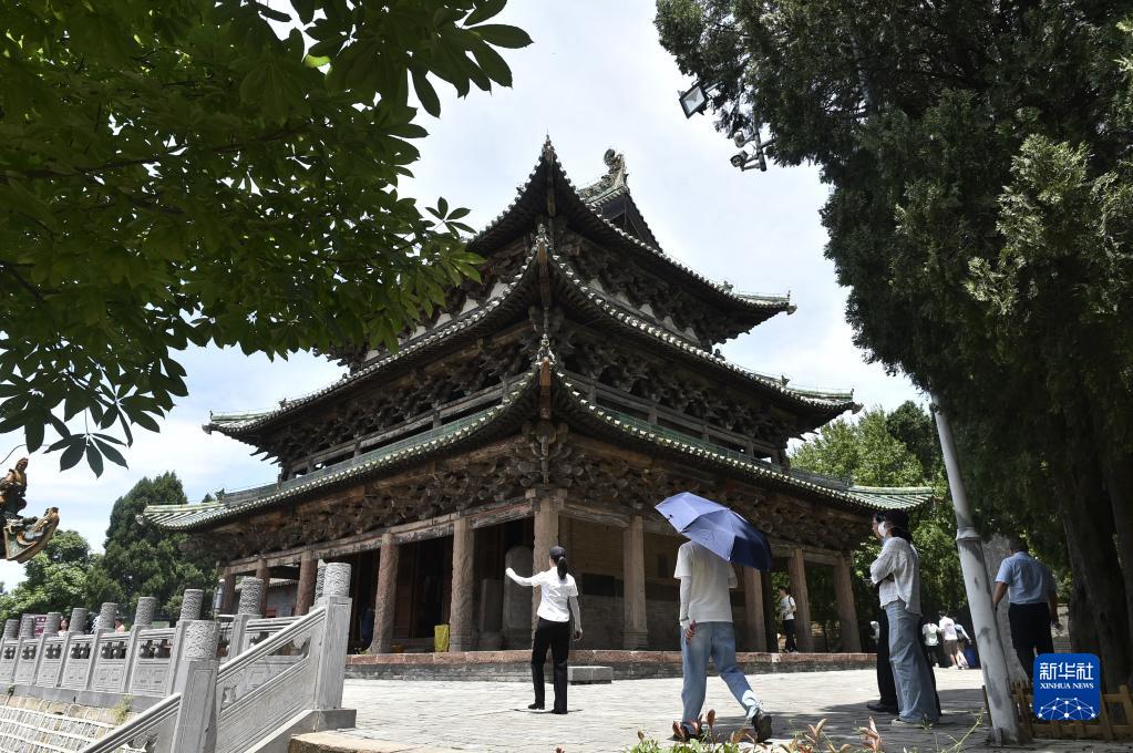 6月15日,游人在王屋山上參觀(guān)一處古跡。