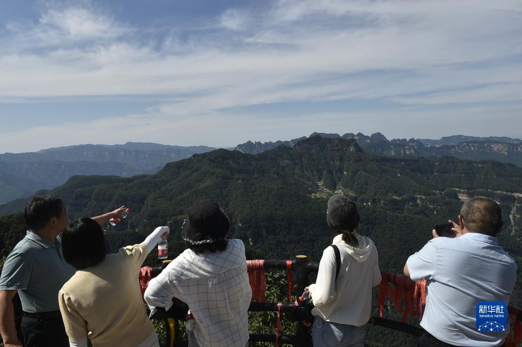 6月15日,游人在王屋山的一處觀(guān)景臺上賞景拍照。