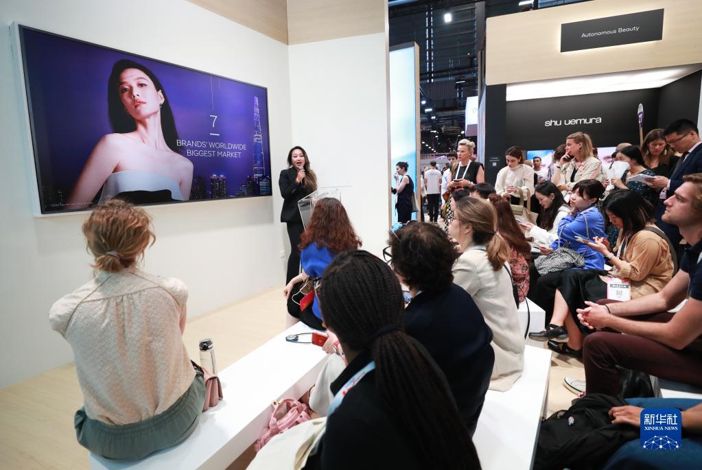 6月15日,在法國巴黎凡爾賽門(mén)展覽中心,人們在“科技萬(wàn)歲”科技創(chuàng )新展的歐萊雅展臺參觀(guān)。
