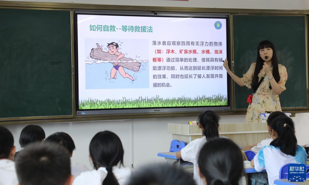 6月15日,在南昌二十八中灣里實(shí)驗學(xué)校,師生在開(kāi)展防溺水主題班會(huì )。