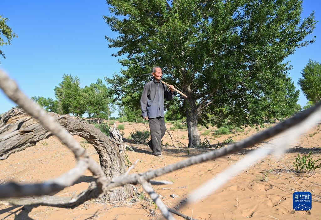 內蒙古鄂托克前旗城川鎮呼和陶勒蓋嘎查地處毛烏素沙地腹地,這里曾經(jīng)風(fēng)沙肆虐,當地的農牧民深受其害。從1958年開(kāi)始,16歲的曹扎娃便跟著(zhù)父輩們一起種樹(shù)治沙,成為種樹(shù)能手。