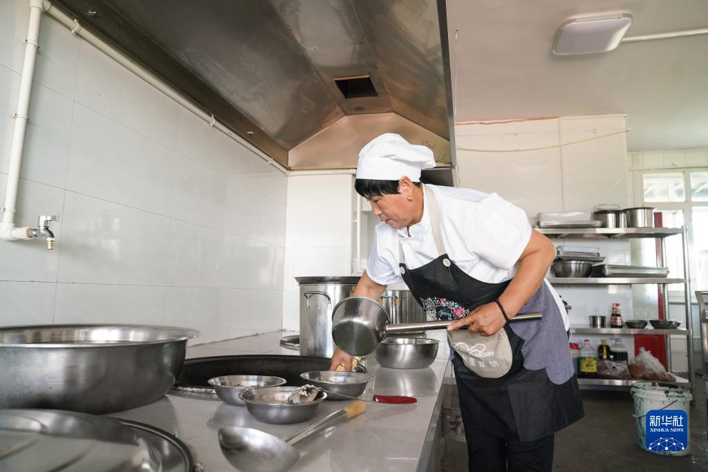 在西安村一旅游景點(diǎn)的后廚,王英俠在幫廚(6月15日攝)。