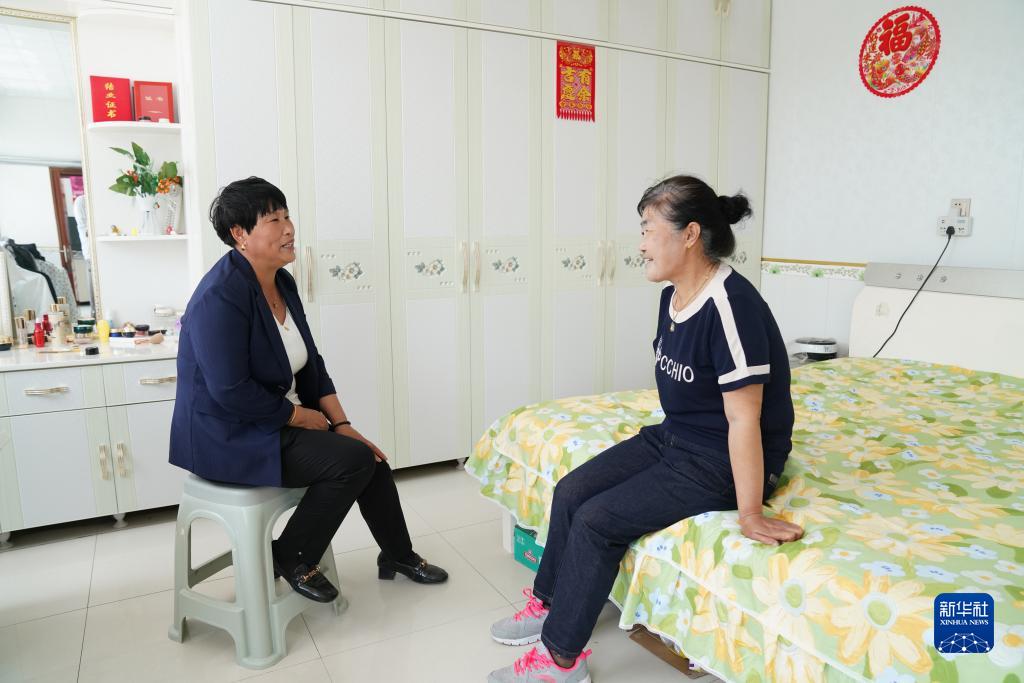 王英俠(左)在西安村一村民家中走訪(fǎng)(6月15日攝)。