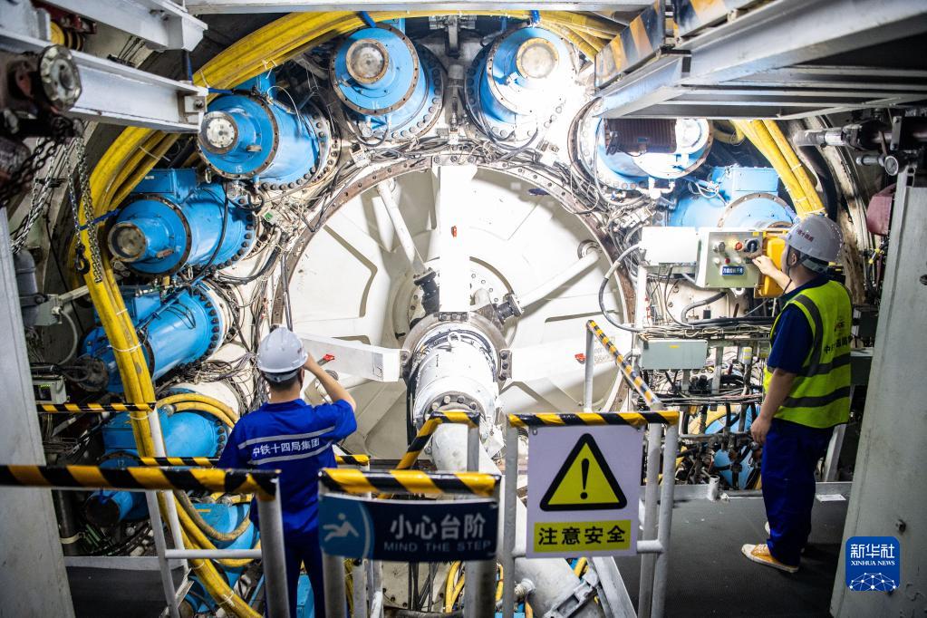 6月16日,工作人員在檢查“長(cháng)江號”盾構機運行情況。
