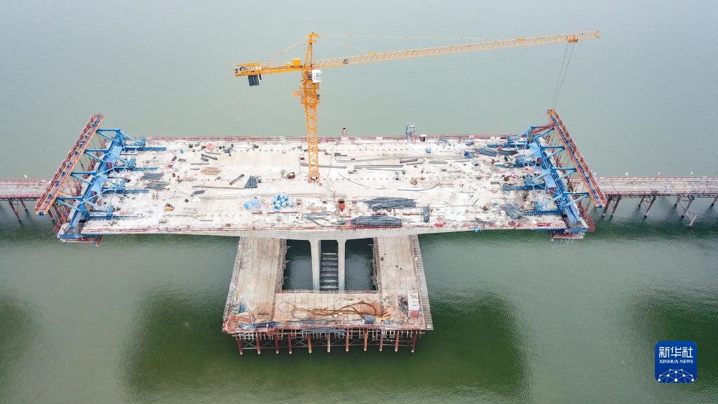 這是6月16日拍攝的香爐洲大橋項目建設現場(chǎng)(無(wú)人機照片)。