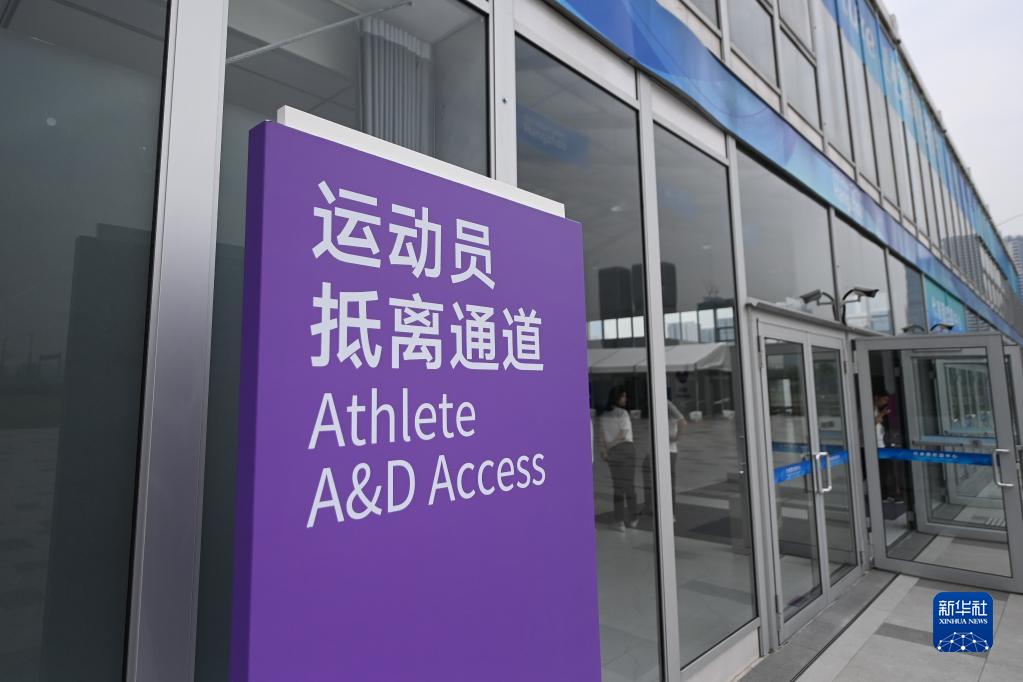 這是6月16日在杭州亞運村歡迎中心拍攝的運動(dòng)員抵離通道。
