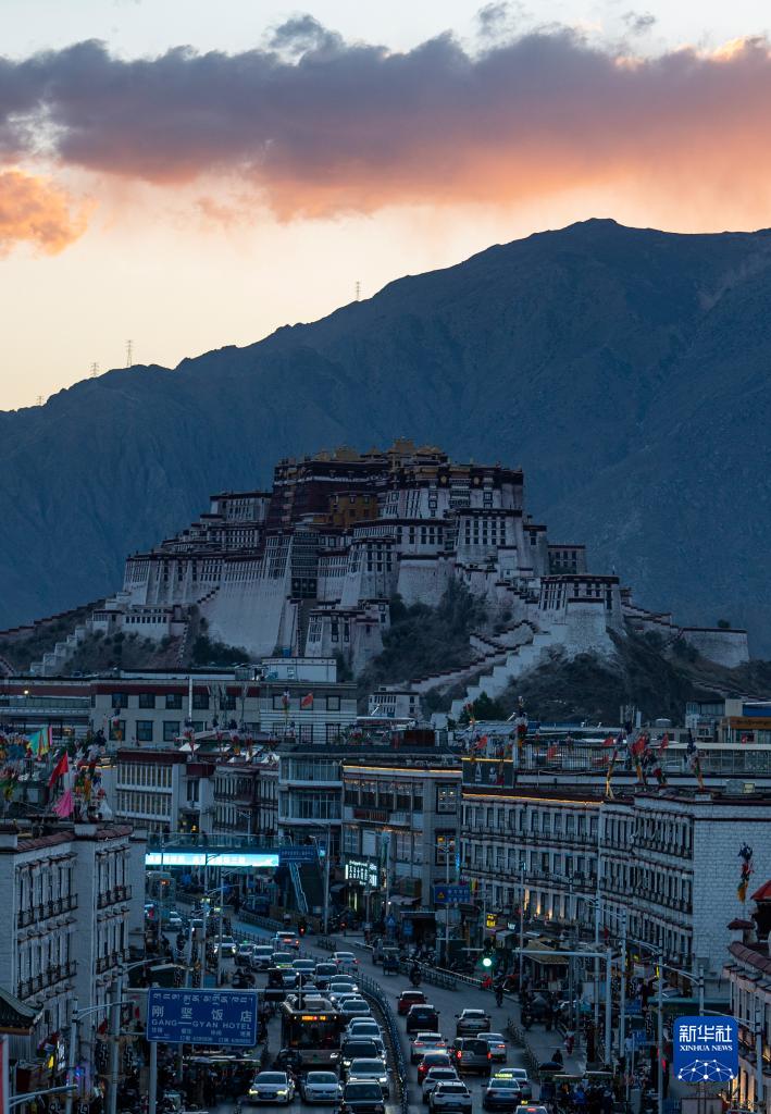 這是日落時(shí)分的布達拉宮(6月7日攝)。