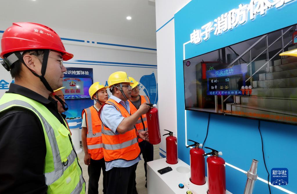6月16日,工人參加火情排險和撲救的互動(dòng)游戲。