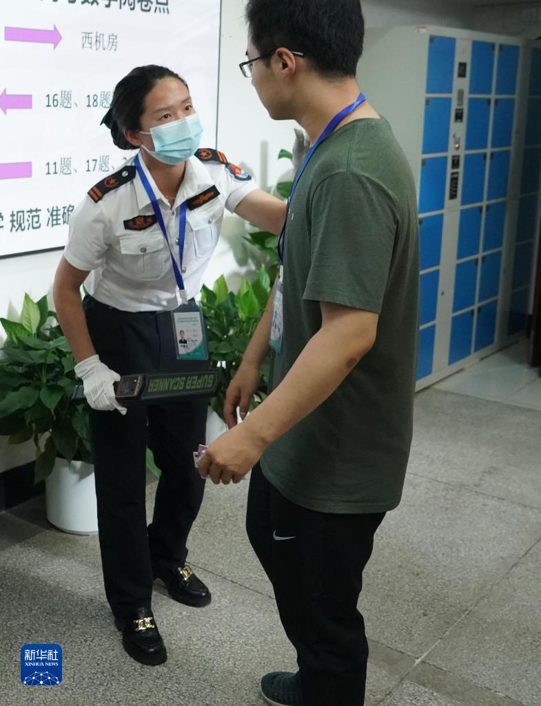 6月16日,在位于清華大學(xué)的高考數學(xué)評卷點(diǎn),安檢人員對進(jìn)入評卷現場(chǎng)的老師進(jìn)行安檢。